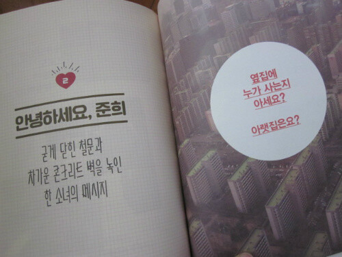 옆집에 누가 사는지에 대한 작은 관심이 사회를 바꿀 수도 있는 건 구지 설명하지 않아도 알지 않는가?