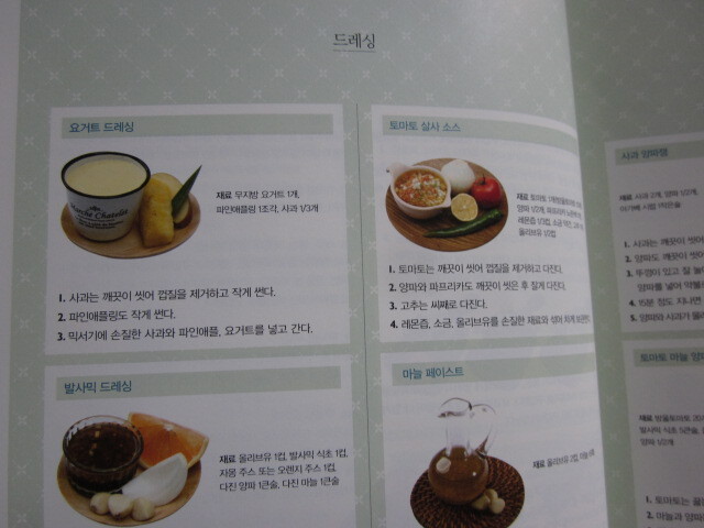 이제 곧 신부가 될 예비신부들을 위해서 계량하기, 재료 써는 법, 간단한 드레싱 만드는 법 등이 먼저 소개되고 있답니다. 유용하겠죠?