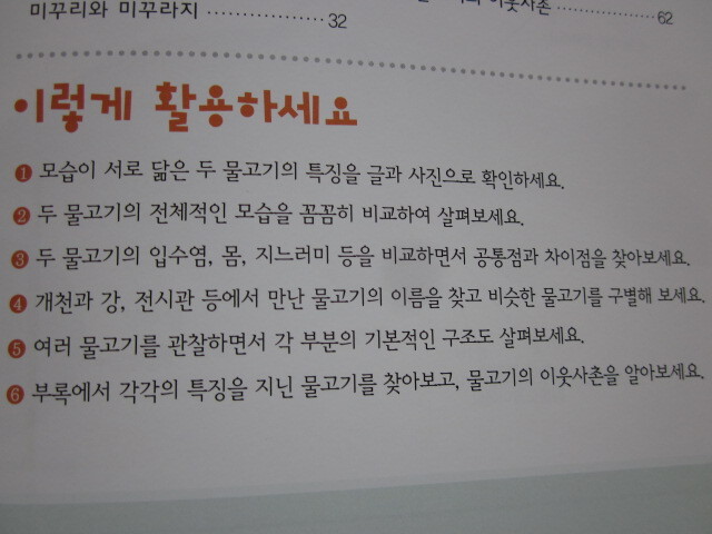 서로 닮은 물고기를 비교하면서 공통점과 차이점을 찾아보라고 되어 있네요.