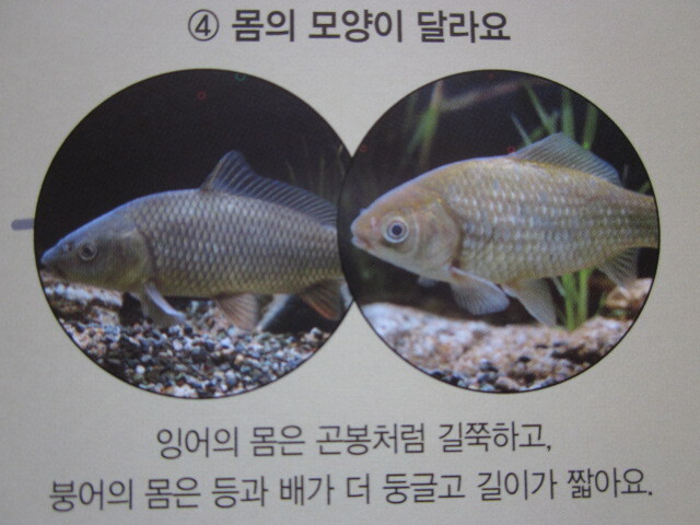 붕어가 잉어보다 둥글고 더 귀염성이 있네요.