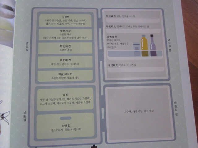 냉장고를 효율적으로 정리하는 법도 나오네요.