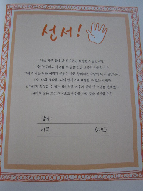 한장씩 넘길때마다 뭔가 새로운 미션이 나오는데 창의적으로 생각하고 아이디어내라고 하네요.