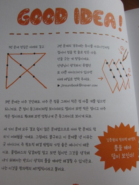 김충원 선생님의 이번 책은 대학생 대상으로 하던 '창조력 향상 프로젝트'의 어린이 버전이라고 하네요.