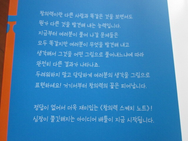 창의력은 다른 사람과는 다르게 생각하는 자유로운 발상이라는 말에 책머리에 소개됩니다.