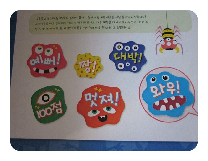 몬스터를 완성시키는 방법은 바로 책 속에 들어 있는 스티커를 활용하는 거랍니다.