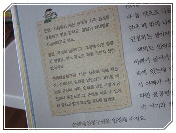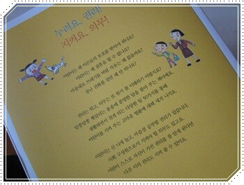 사실 구성 면에서는 아쉬움이 많이 남는다. 그동안 권리에 대해 다루어진 책을 종종 봐왔는데 이렇게 하나하나 설명식의 글은아이들의 호감을 얻지 못한다. 아이들에게 권리에 대해서 관심을 갖게 하려면 삽화를 다양하게 사용하거나 이야기를 이끌어나가는 캐릭터를 갖는것도 좋았을 법하다.