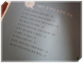 인간에게 가장 중요한 것은 인간 자체로서 존엄성을 인정 받는 것이다. 목차를 살피니 인간의 존엄성과 가치에 대한 권리부터 시작해서 다른 나라에서 일어나는 어린이들의 인권문제까지 다양하게 살피고 있다.