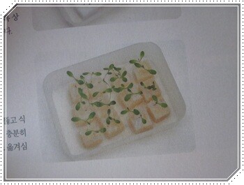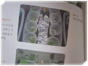 그 다음은 스펀지에 기른 싹을 투명 유리컵에 끼워 트레이에 놓으면된다. 이때 다양한 팁은 책속에서 얻으시길~~