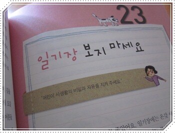 어른들이 흔히 하는 것중에 아이를 보살핀다는 명목으로 혹은 숙제를 검사한다는 명목으로 일기장을 검사하는데 어린이들에게도 개인적인 사생활을 보호받을 권리가 있음을 알려주고 있다. 이는 많이 알고 있는 부분이지만 아직도 학교에서 주제를 주고 일기 숙제를 내고 검사하는 선생님들이 많고 아이가 숙제를 했는지 검사하는 부모가 많으니 뜨끔하다.