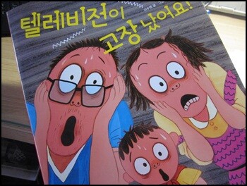 책읽는 곰의 그림책은 늘 읽고 나면 입가에 미소를 짓게 된다. 제목부터가 호기심을 갖게 하는 이번 그림책의 이름은 <텔레비전이 고장났어요>이다. 고장난 텔레비전때문에 모두 맨붕상태가 된 가족들의 모습이 담긴 표지그림이 마냥 웃기기만 하다. 중학생 딸이 낼름 먼저 읽고 나서 한 말이 바로 맨위에 쓴 그 말이다. 딸아이 말대로 정말 재미난 그림책 한 권^^ 정말 행복하다.~~