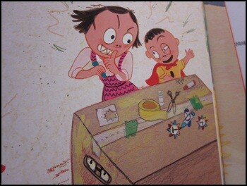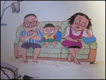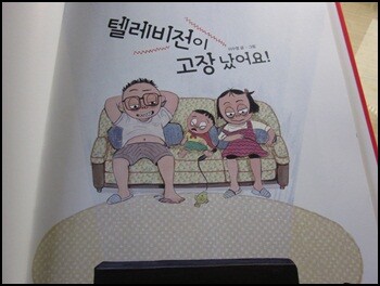 아빠와 엄마가 보고 싶은 채널 쟁탈전을 하다가 그만~~텔레비전이 고장 나고 말았다. 모두 무엇을 해야 할지 모르는 상황표현 역시 이상하지 않다. 그만큼 우리가 너무 텔레비전에 길들여졌다는 말일 수도 있다. 텔레비전이 갑자기 고장나서 볼 수 없다면 아마 이 가족처럼 뭘 해야 할지 몰라 멍하니 있게 되는 것도 모두 인정할 듯하다. 그럼 계속 멍하고 있어야 할까?
