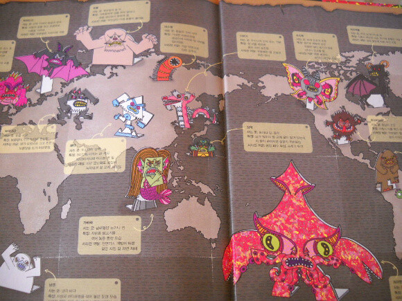 마지막 장에 등장한 괴물들이 살고 있었던, 엄밀히 말하면 어디에서 이야기가 전래되었는지 지도상에 표시되어 아이들과 함께 찾아보는 것도 재미있고 괴물들에 대한 딱지를 가지고 함께 딱지 놀이를 하는 것도 재미있다. 그렇지만 무엇보다도 우리가 지구를 위해 실천할 수 있는 환경법에 대해서 한가지씩이라도 약속을 하는 일이 가장 중요할 것이다.