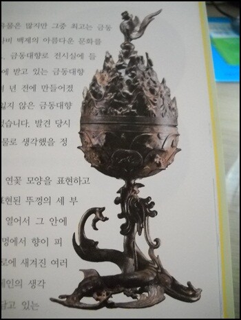 부여박물관에서 꼭 봐야 할 것 중의 하나는 바로 금동대향로이다. 백제예술의 백미라고 할 수 있는 이 향로는 능산리 절터에서 발견되었다고 한다. 당시 진흙속에 있었기에 지금과 같이 보존될 수 있었다고 한다.