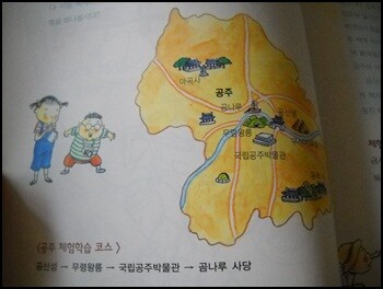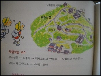 한셩백제 부분의 체험학습 가이드가 없어서 아쉽지만 대신 공주와 부여의 체험학습 장소에 대해서 좀더 세세한 많은 양을 다루고 있어서 그점은 마음에 든다. 공주와 부여에서 어떤 코스로 어디를 답사하는 것이 좋은지 대략적 그림으로 코스를 잡아주고 있다.
