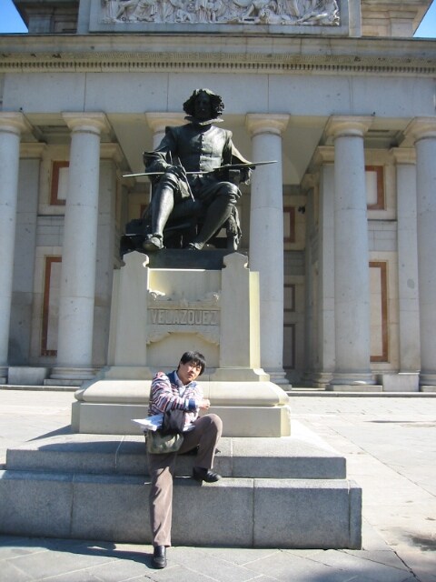 매너님이 사진을 90도 회전시켜주신 덕분에 다시 올렸습니다.제가 좋아하는 스페인 화가 벨라스케스 동상 앞에서 한커트 찍었어요.