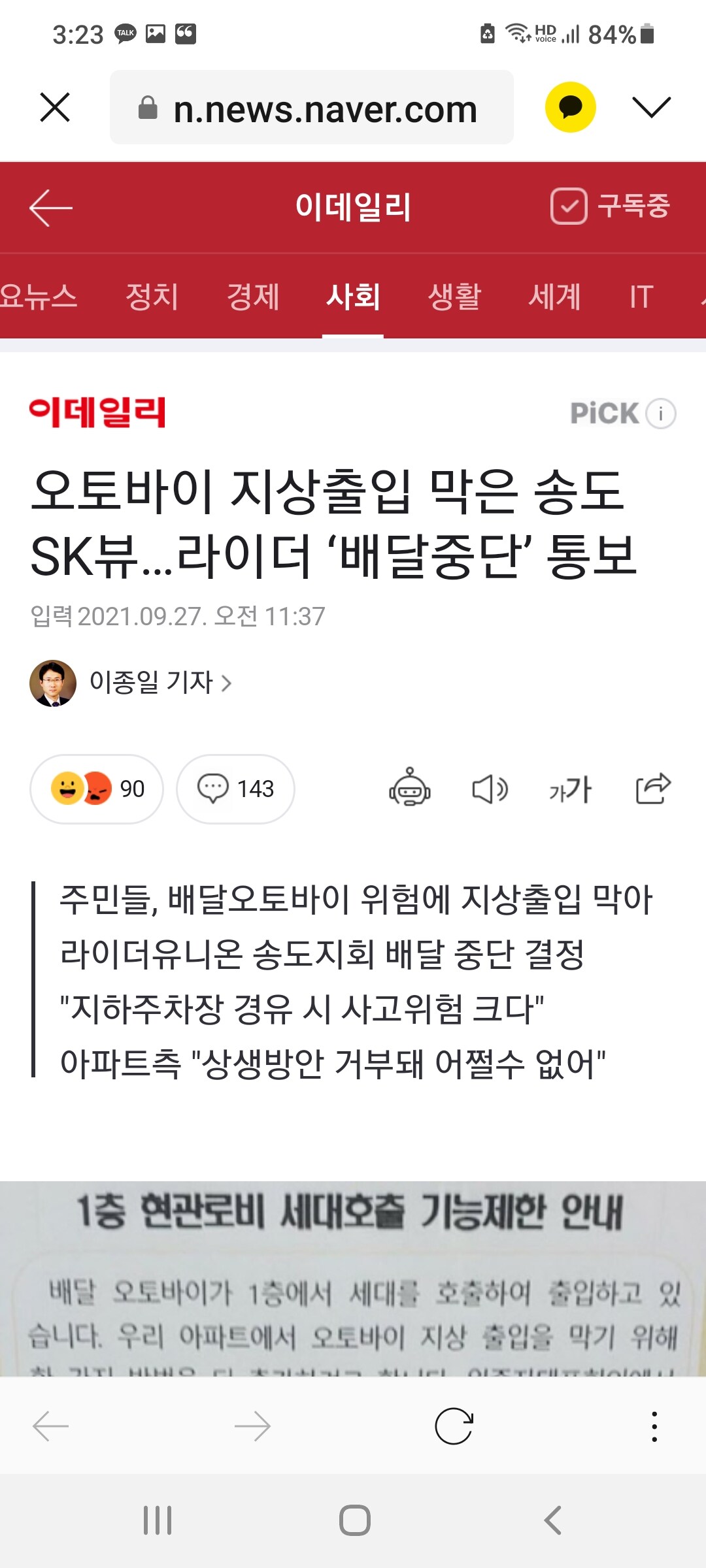코로나로 인한 배달 증가로 오토바이의 폭주가 심해지고, 아파트 층간 소음으로