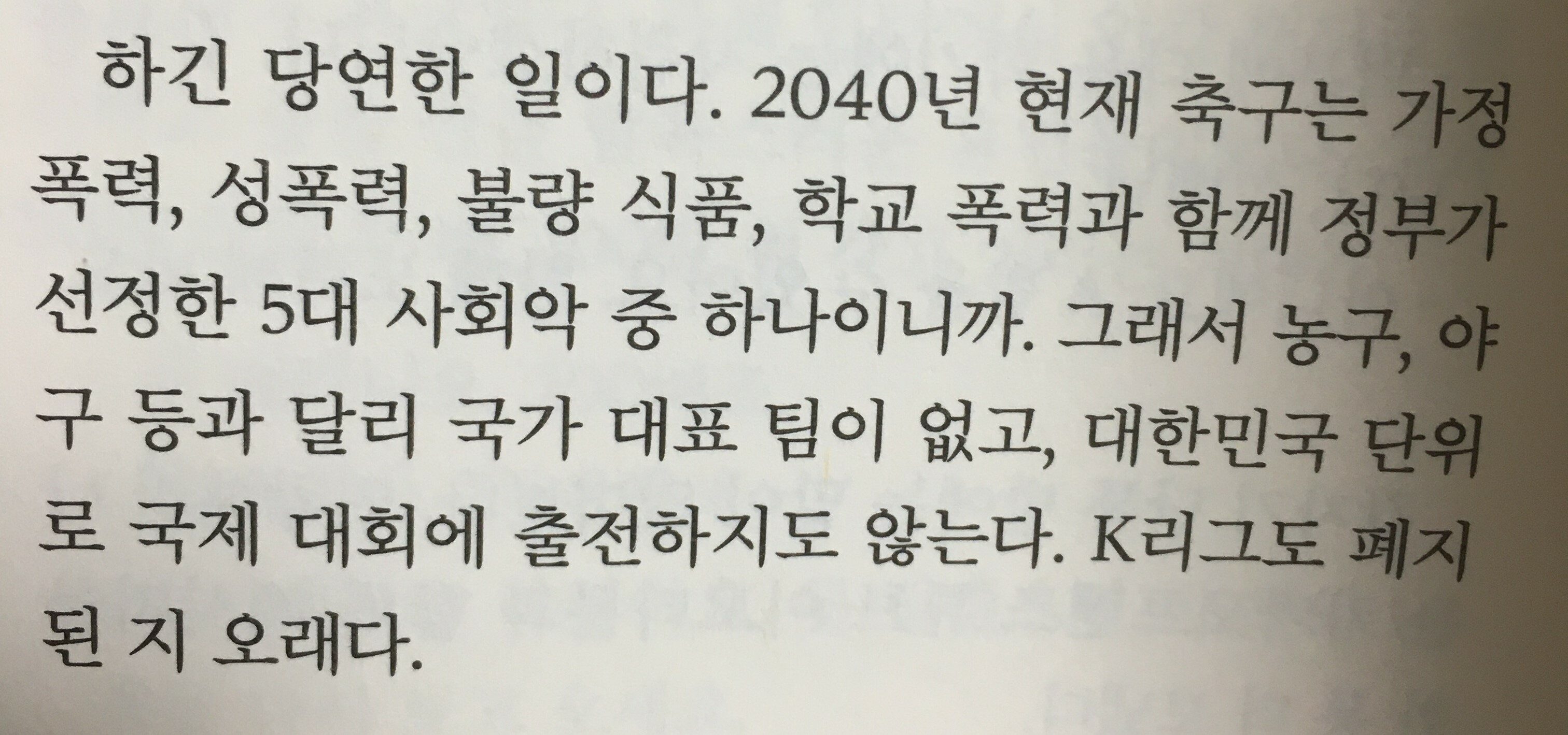 김덕배, 2030년 월드컵 지역예선 한일전에서 결승골을 터뜨린 축구 선수. 평범한 고등학생(선수가 아니라 그냥 학생) 이었으나 댓글놀이의 희생양으로 대표팀에 차출된 ‘근본’ 없는 선수. 하지만 미디어와 인터넷 여론으로 인해 한국 축구의 희망으로 떠오르나 월드컵 본선 전패와 대규모 폭동의 원인을 제공하였으며 그로 인해 축구는 사회 5대악으로 지정되기도 합니다. 지금 어디에 있는지 아무도 모르는 존재.