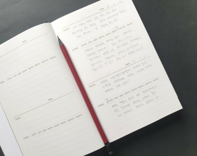 해빙하기, 의외로 어렵지 않다. 간단히 매일 혹은 며칠 동안 실천할 수 있는 것들, 실천한 것들을 적어 보는 거다. 그날의 기분은 어땠는지도 기록한다. 해빙의 효과를 증폭시키기 위한 주문 같은 마법서다. 실제로 《더 해빙》에서 노트를 사용해 해빙하는 장면이 나오는데 실제로 노트로 출시해 기대감을 높였다.