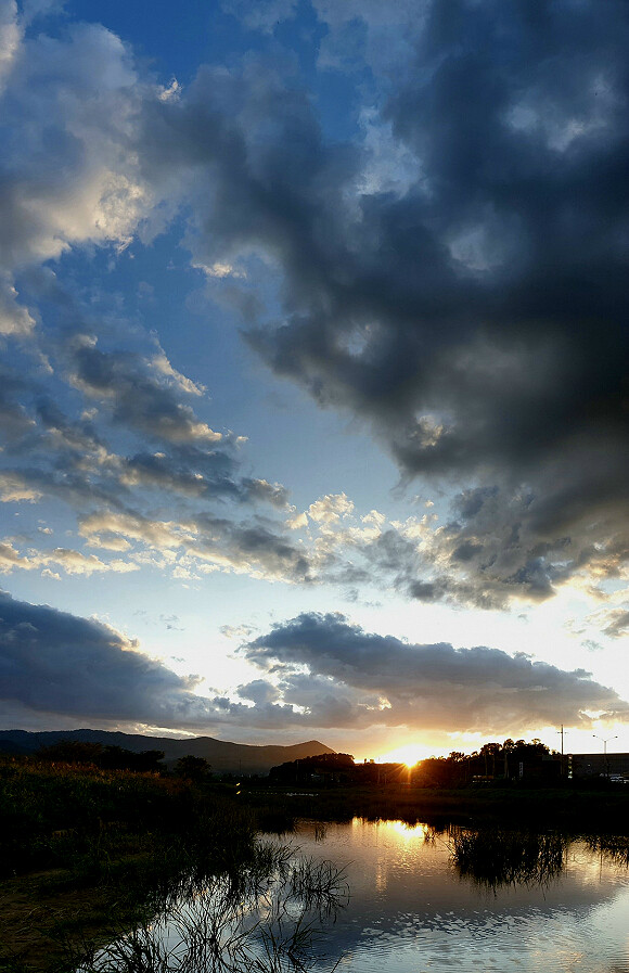 어울림이다. 느긋하게 하루를 마감하는 시간이 조화롭다. 여기저기서 가을의 한복판으로 서둘러 가고 있음을 온몸으로 증명하느라 모두가 바쁜 시간을 공유한다.하늘과 강이 빛과 구름으로 서로에게 기대고 낮과 밤이 서로의 품에 드는 시간이다.여전히 서쪽이 옳다.