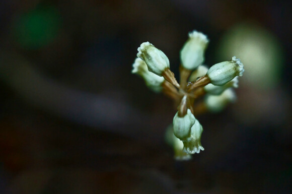 '습기가 많은 돌 틈과 음지 혹은 반그늘에 참나무류가 쓰러져 썩은 곳'에서 자라는 천마天麻는 하늘에서 떨어진 약초라는 의미다. 긴 타원형의 뿌리는 약용으로 쓰인다고 한다.