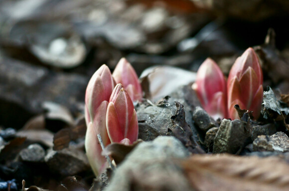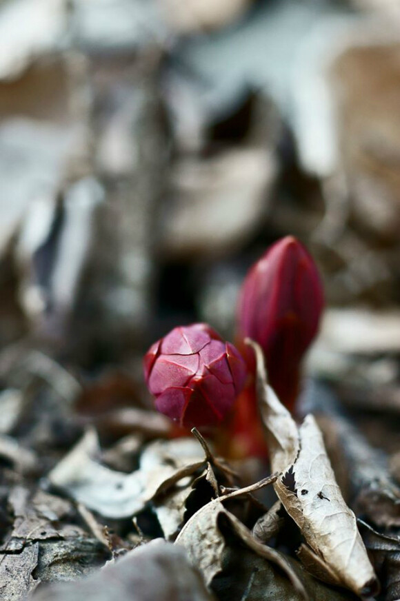 작약의 새순이 조바심으로 기다리게 한다면 이 붉은대극의 새순은 경이로움이 앞선다. 언땅을 뚫고 붉디붉은 새순을 밀어올리는 모습에서 생명의 신비로움을 만난다.