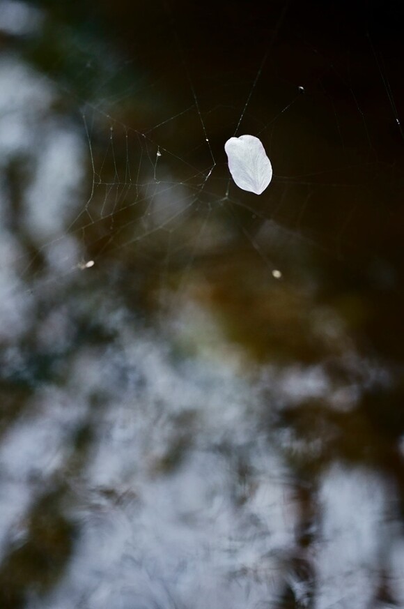 진 산벚꽃이 거미줄에 걸렸다.