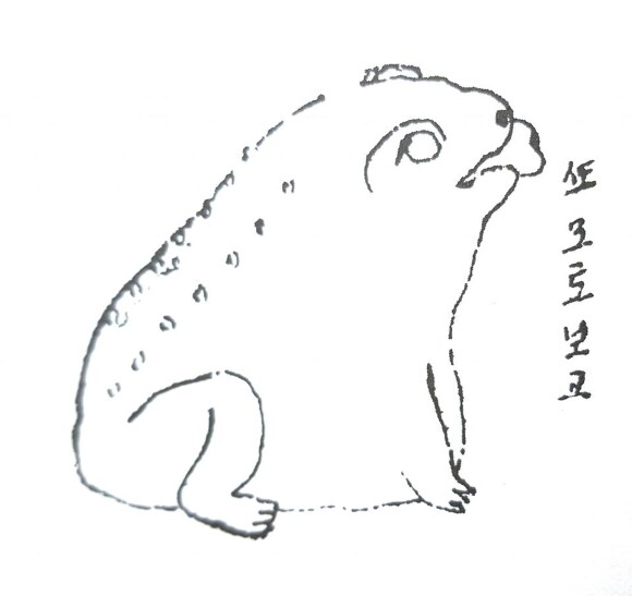 “툭 튀어나온 눈깔과 떡 버티고 앉은 사지四肢며 아무런 굴곡이 없는 몸뚱어리―그리고 그 입은 바보처럼‘헤―’하는 표정으로 벌린 데다가 입속에는 파리도 아니요 벌레도 아닌 무언지 알지 못할 구멍 뚫린 물건을 물렸다. 콧구멍은 금방이라도 벌름벌름할 것처럼 못나게 뚫어졌고 등허리는 꽁무니에 이르기까지 석 줄로 두드러기가 솟은 듯 쪽 내려 얽게 만들었다.”