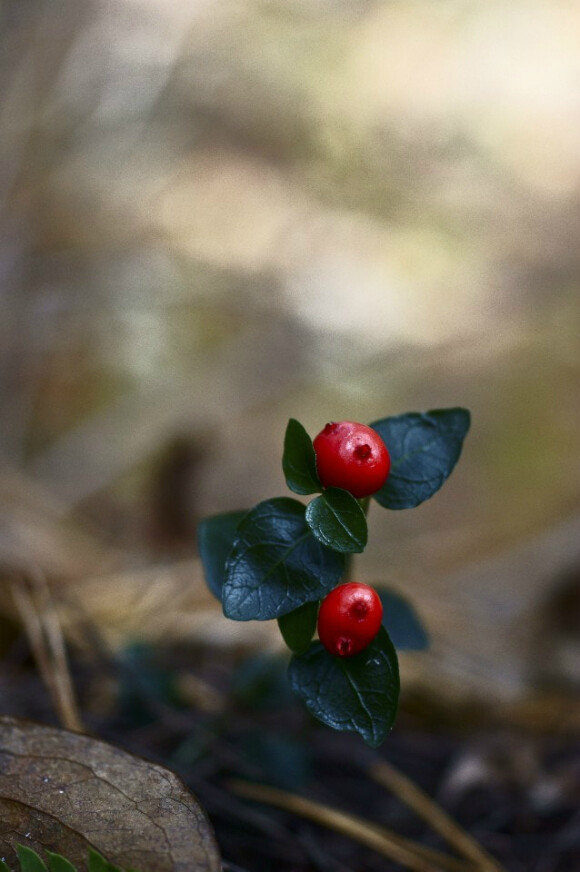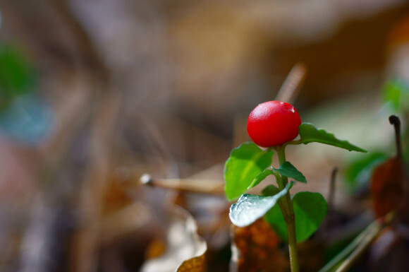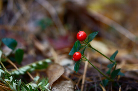 붉은색의 둥근 열매에는 두 개의 흔적이 있다. 꽃이 맺혔던 흔적일까. 다른 열매와 구분되는 특징이기도 하다.