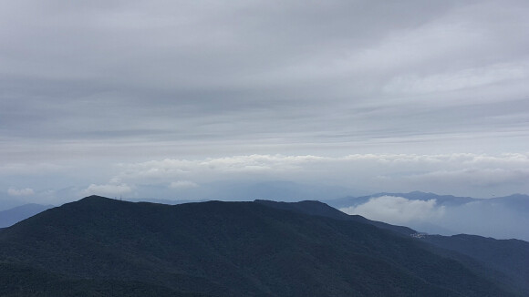 노고단 정상에서 건너다 보며 돼지령에서 출발했다. 지나온 발자국을 되돌아보며 돌아갈 길을 그려본다. 노고단 정상과 돼지령, 정령치가 한눈에 들어온다. 잠깐의 소나기는 더워진 몸을 안정시켜줄 뿐이다.