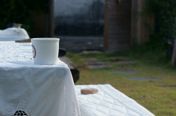 매실 냉차 한잔 만들어 뜰에 앉았다.