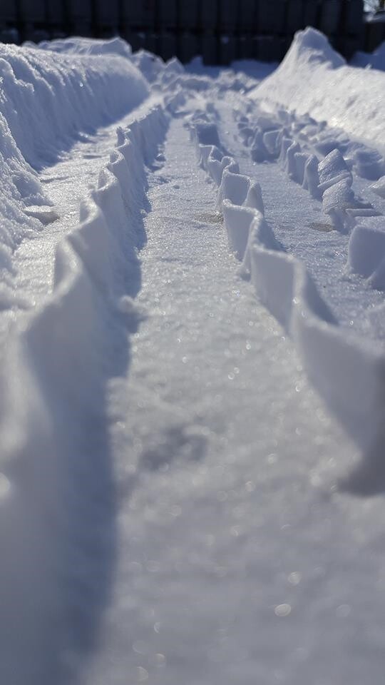 덩치 큰 차가 지나간 흔적이 깊게 남았다. 골지고 경계를 나누어 담을 쌓았지만 고정불변이 아니다. 이내 허물어지고 녹아 내리기에 잠깐동안만 볼 수 있는 모습이다.