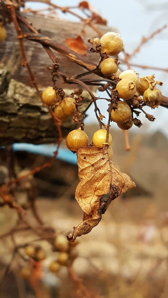 경상도에서는 망개나무, 전라도에서는 맹감나무, 혹은 명감나무라 불리는 청미래덩굴은 어린시절 놀던 그 추억처럼 '장난'이라는 꽃말을 가졌다.