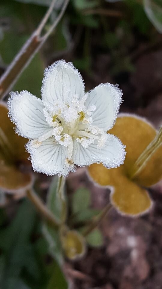 서리꽃이 피었다. 그것도 물매화 곱디고운 얼굴에 청초함을 더해주는 귀한꽃이다. 가을의 끝자락에서 만나는 계절의 선물이다.