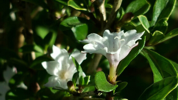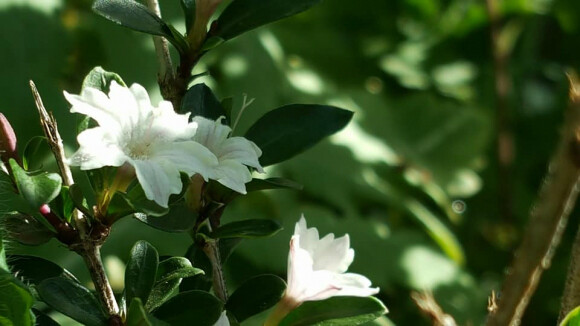 작은 종 모양의 연한 붉은 색의 꽃이 가지끝에 모여 피었다. 꽃술을 감싼 모양이 앙증맞아 한참을 들여다보게 한다. 한옥의 처마끝이 하늘을 향해 살며시 들어올려지듯 다섯 갈래의 꽃의 끝마무리도 아름답다.