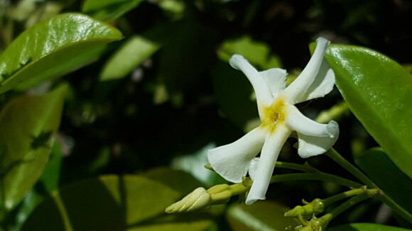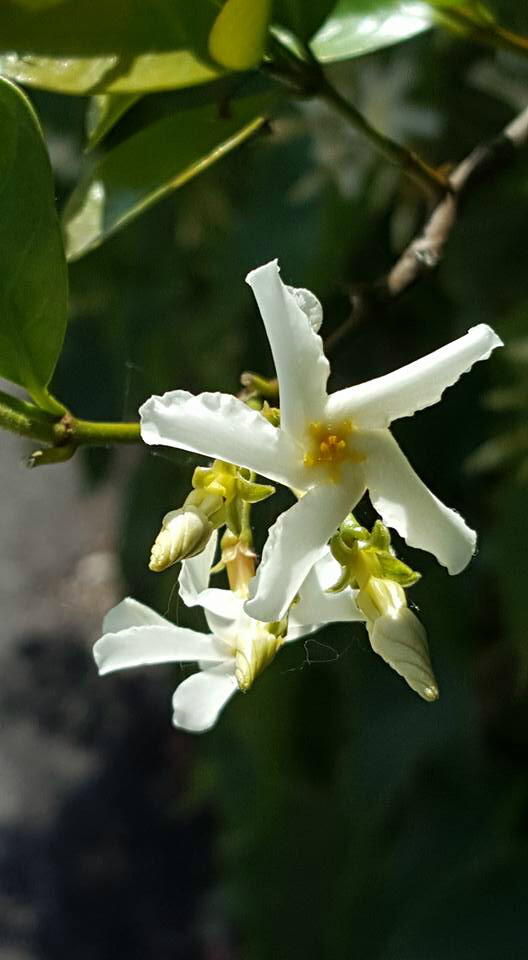 멀리서도 분명하게 알아볼 수 있는 모양으로 핀다. 흰 바람개비를 닮았다. 모양도 독특하지만 향기도 일품이다. 새로 나는 햇가지 끝에 흰색으로 피며 점차 노란색이 된다.