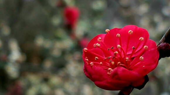 모월당慕月堂 뜨락이 홍매로 붉다.