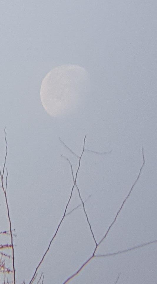 밤을 건너오며 품을 줄인 달이 나무가지 위에 멈추었다. 바쁜 아침 출근길이라지만 어찌 피할 수 있겠는가. 잠시 눈맞춤이라도 하고 가려는 것임을 알기에 기꺼이 차를 멈춘다.