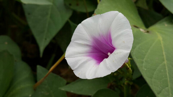 꽃은 7∼8월에 잎겨드랑이에서 나온 꽃자루에 연한 홍색의 나팔꽃 모양으로 몇 개씩 달린다.