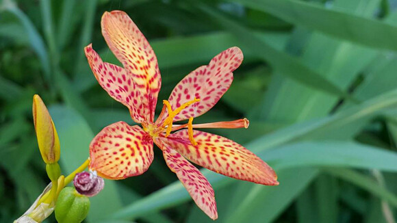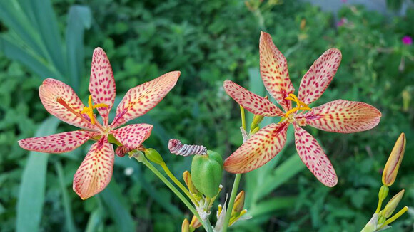'범부채'는 물 빠짐이 좋은 양지 혹은 반그늘의 풀숲에서 자라는 여러해살이풀이다. 꽃은 7∼8월에 황적색 바탕에 짙은 반점이 있는 꽃이 핀다. 꽃이 지면서 꽃잎은 꽈배기처럼 꼬이고 타원형 열매가 달린다.