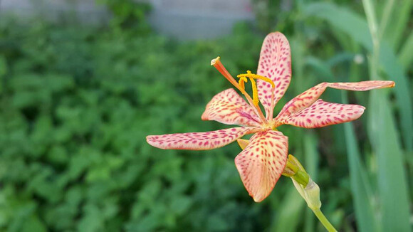 눈부신 햇볕이 제 철인양 빤히 얼굴을 내밀고 있다. 주근깨 닮은 반점은 어쩌면 당연한 것이리라. 한 포기에서 꽃봉오리, 꽃잎, 열매를 동시에 볼 수 있는 흔하지 않은 모습을 보여준다.