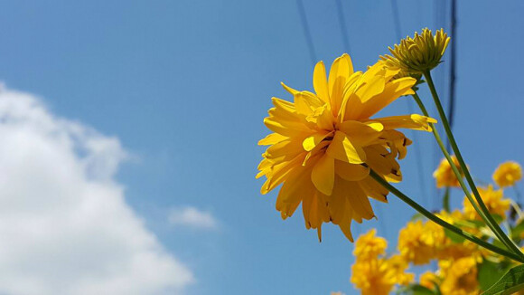 도발적이다. 하늘을 이고 짙은 주황색으로 무장하고 강럴함이 본심인듯 당당하게 솟구쳤다. 가녀린 꽃잎이 겹으로 쌓여 봉우리를 만들어 원만함을 갖추니 존재감을 빛나게 한다.