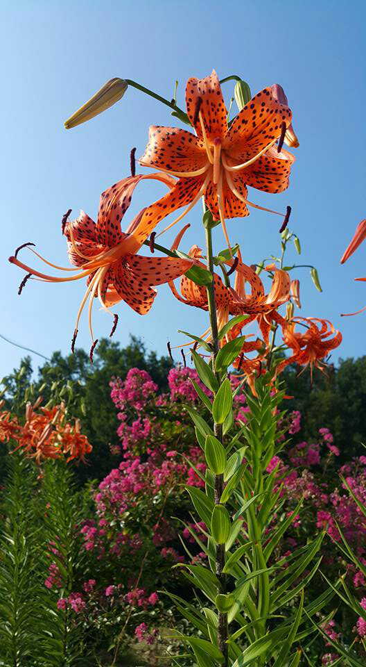 여름날의 하늘 속에 보이는 참나리의 이미지와 어울리는 '순결', '깨끗한 마음'이라는 꽃말을 가졌다.
