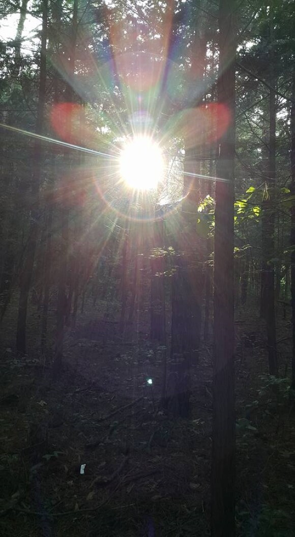 숲의 성근 나무사이를 뚫고 햇살이 스며든다.