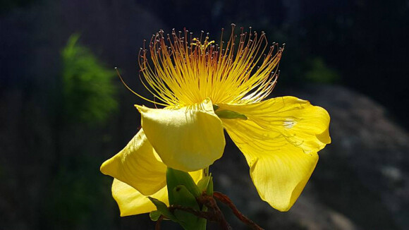 꽃은 6-8월에 줄기와 가지 끝의 모여 피며, 노란색이다. 노란색의 꽃잎이 화려하며 많은 수의 수술이 다섯 묶음으로 난 특징을 지닌다.