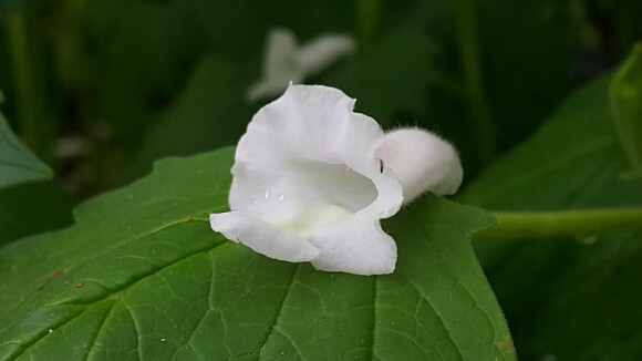 꽃은 6~10월까지 흰색의 화사한 꽃이 핀다. 꽃과 함께 붉은 빛이 도는 갈색의 꽃받침도 꽃만큼 아름답다.