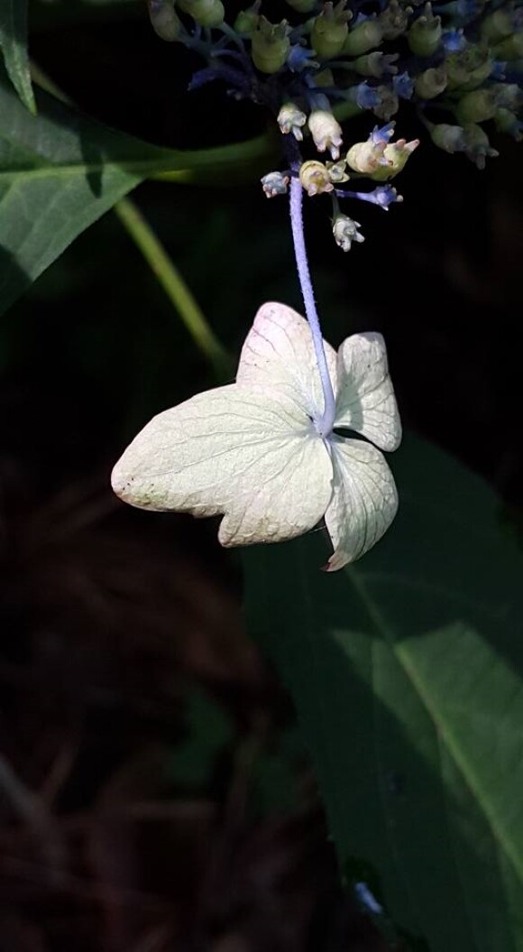 산수국의 헛꽃은 진짜꽃이 매개체에 의해 수정이 끝나면 매개체들에게 더이상 수고로움을 끼치지 않아도 된다는 표시로 자신의 몸을 뒤집는다고 한다.