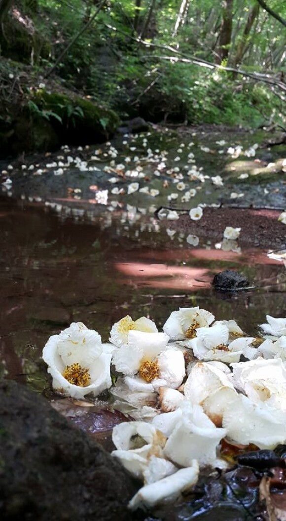 꽃은 6~8월에 연한 홍색으로 피는데 잎겨드랑이에서 긴 꽃자루가 나와 그 끝에 하나씩 위를 향하여 달린다.