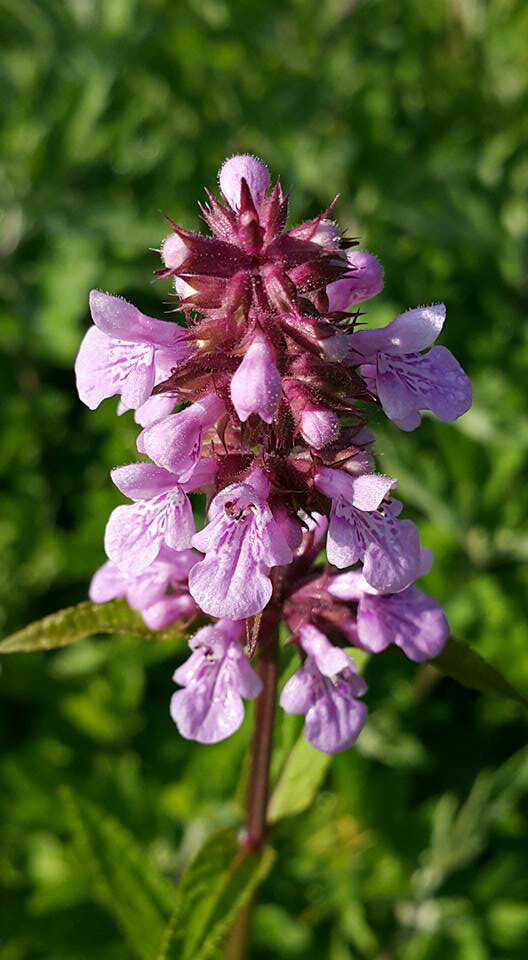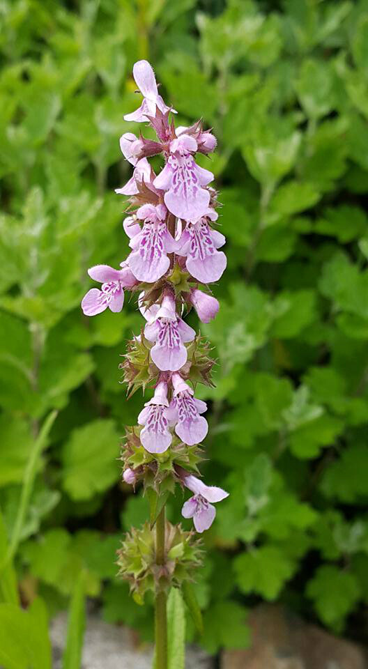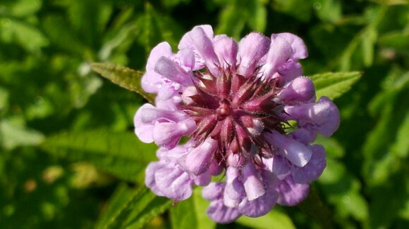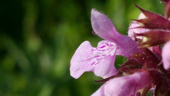 꽃은 6-8월에 줄기 위쪽의 잎겨드랑이에 층층이 돌려나며, 입술모양의 닮은 연한 자주색을 띤다.