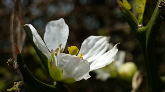 바람앞에 연약한 꽃잎이다. 쉴새없이 흔들리며 햇볕에 빛난다. 지켜야하는 할 몫이 있어 가시를 달았다. 하지만 가시로는 다 지키지 못함을 알기에 순박한 꽃잎을 더 달았는지도 모르겠다. 하얀 꽃잎에서 노오란 탱자향이 난다.