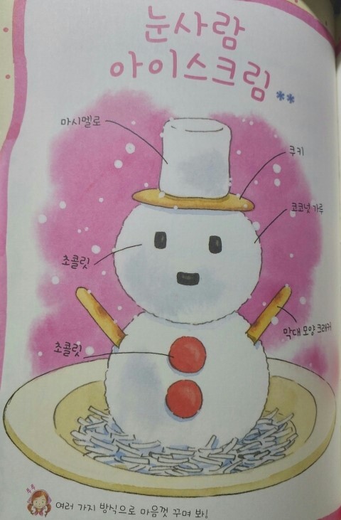 사랑스러운 그림과 재미있으면서도 따듯한 내용뿐 아니라 숲 속의 꼬마 파티시에인 루루와 라라가 알려주는 아이스크림을 만드는 법, 장식하는 법도 배울 수 있어서 좋고요. 더위를 타시면서 눈사람이나 하나 먹고 싶다고 입버릇처럼 말하는 슈가 아주머니를 위해 만들어간 눈사람 아이스크림의 아이디어도 정말 좋더군요. 채색이 예쁘게 되어 있는 그림도 있지만, 아닌 것도 있어서 아이들을 위한 컬러링북으로 써도 괜찮겠다 싶어요.